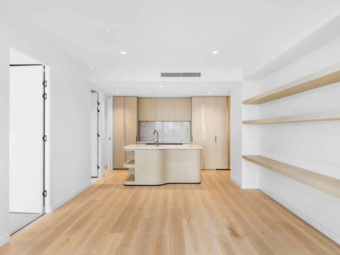 This luxurious residence offers a spacious, open-plan living area overlooking city views, featuring upgraded fish-bone wooden floor, a cutting-edge kitchen with island bench and ample storage space. The Master bedroom is generously proportioned, including its own ensuite and built-in robe.