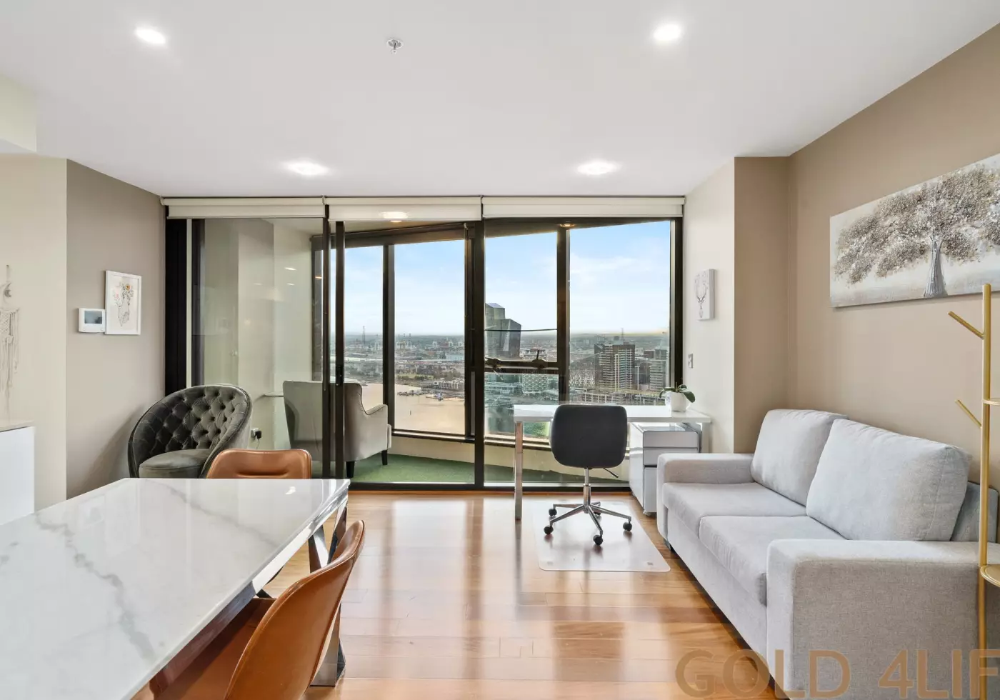 Indulge in the epitome of luxury on the 31st floor of the prestigious Victoria Point building with this exquisite and timeless 2-bedroom, 2-bathroom apartment. Nestled in a scenic location, this residence offers breathtaking panoramic views of the picturesque Yarra River, bustling waterfront, lively marina, and the magnificent Marvel Stadium. Immerse yourself in the tranquil beauty of the surroundings while enjoying the convenience of a fully furnished apartment equipped with top-of-the-line appliances and stylish furniture.