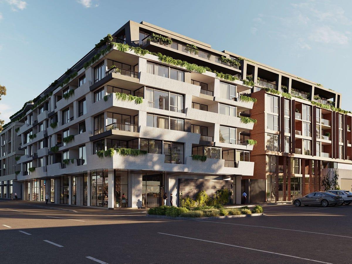 This apartment showcases a well-thought-out floorplan and impeccable finishes. It features a bedroom with built-in robes, an open-plan kitchen/living area with stone benchtops, and high-end appliances that seamlessly connect to a spacious balcony overlooking the beautifully landscaped communal gardens.