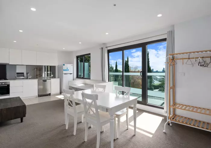 Step into the bright and welcoming interior of this contemporary residence. The heart of the home lies in the open-plan lounge, meals area, and sleek white kitchen, complete with stainless steel appliances, including a gas cooktop, and a stylish glass splashback. Extend your living space outdoors to your own private balcony, offering serene views of lush treetops.