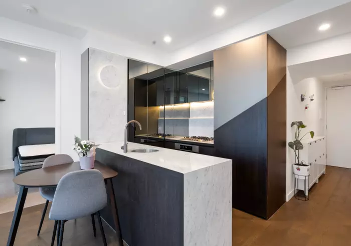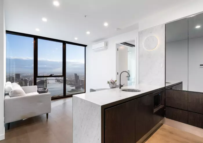 For those looking for something more active, you will find a fully equipped gym along with yoga, pool, and sauna facilities, as well as entertainment zones on Level 7. The premier lounge with billiards, ping pong, and karaoke is located on Level 46, and an exclusive lounge on Level 77 offers impressive views of the Melbourne CBD skyline and Port Philip Bay.