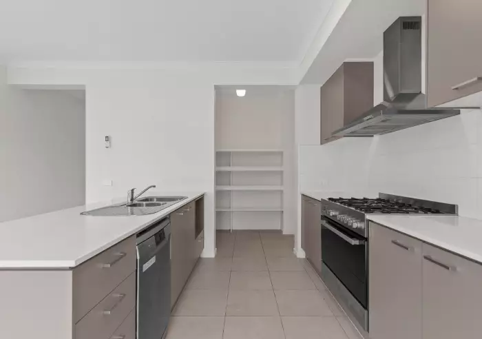 The home features high-end amenities such as stone benchtops, 900 mm stainless steel appliances, an alarm system, and a double remote garage with internal access.
