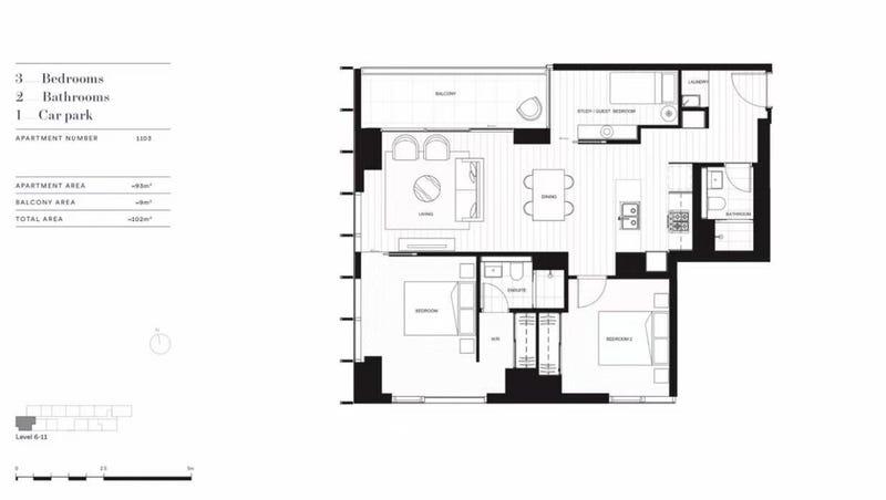 - Expansive 102sqm layout with 2 large bedrooms + full-sized study/guest room