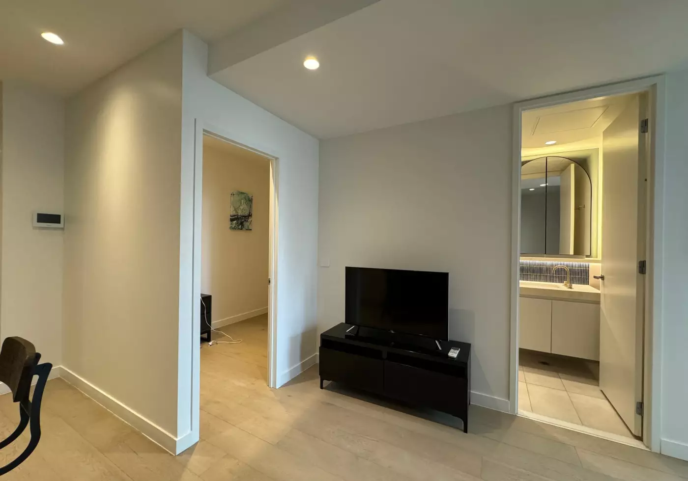 Fully furnished with modern amenities, including two comfortable beds. The balcony provides a peaceful retreat overlooking the serene neighborhood.