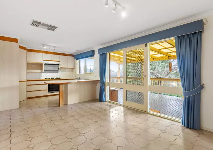 Discover serene park-front living in this charming single-level home, tucked away in a quiet square that features a playground, making it a peaceful retreat away from street noise. Perfectly situated in the sought-after Regency Park Estate, this residence is designed for comfort and flexibility, boasting dual living zones and an expansive alfresco deck, ideal for entertaining while enjoying glimpses of the Dandenong Ranges.