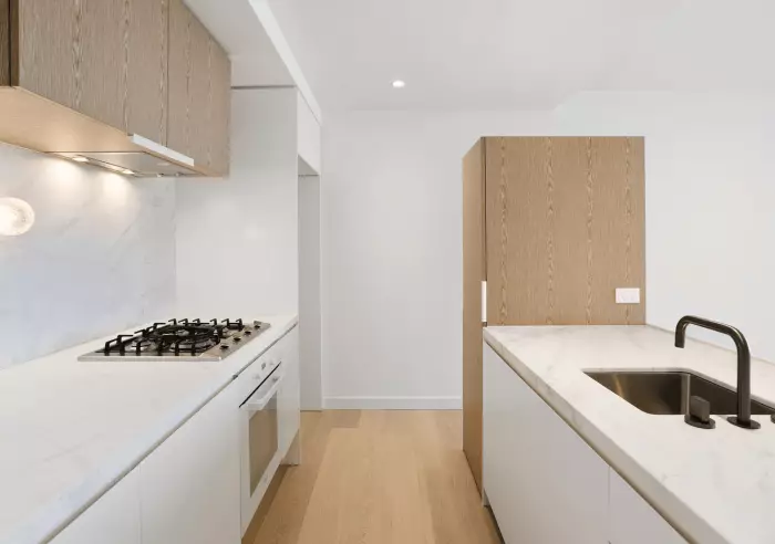 - Modern Kitchen: Fitted with high-end gas appliances, stone benchtops, a dishwasher, and ample storage.