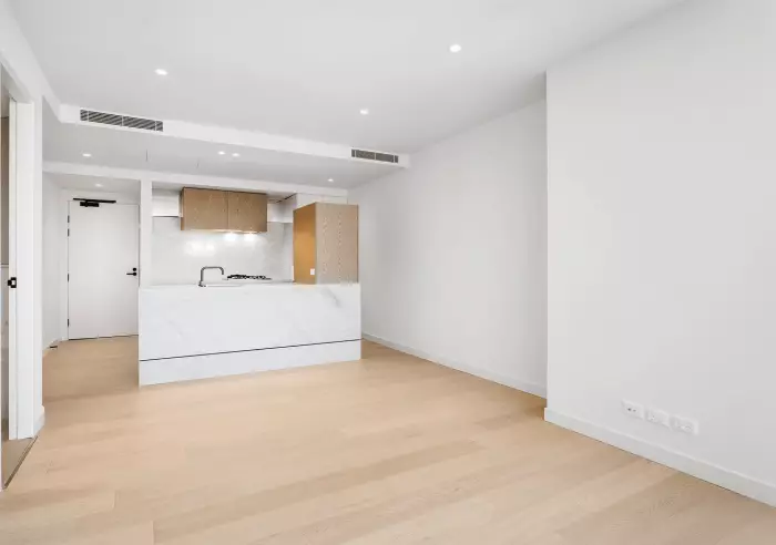 - Living Space: Open plan living and dining area with elegant timber floorboards.