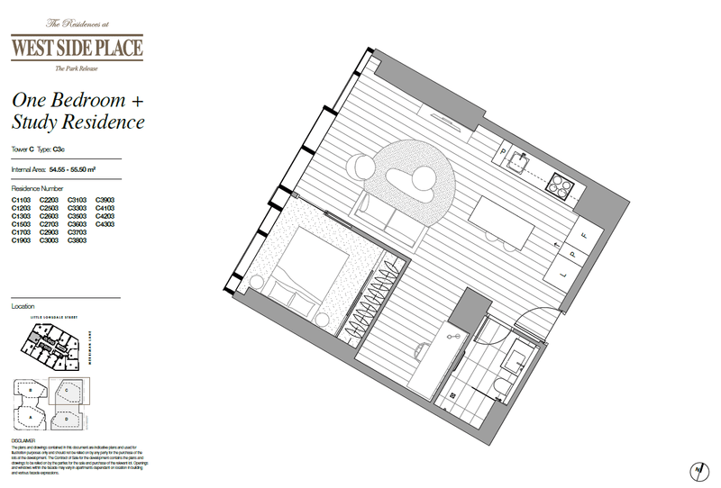 West Side Place Tower C - 1 Bed + 1 Bath + Study with Exceptional Natural Light