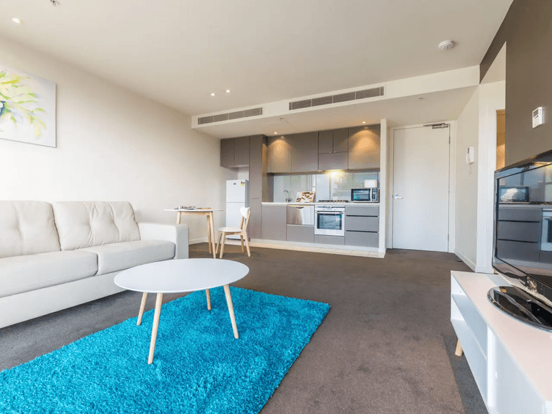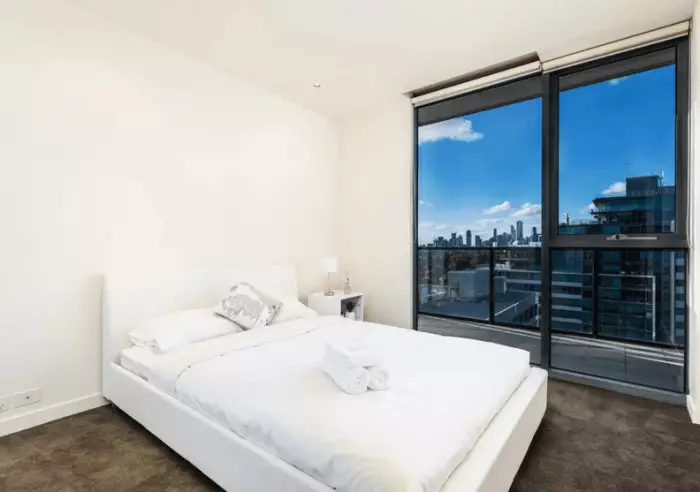 This stunning residence features a spacious open-plan living and dining area bathed in natural light, courtesy of floor-to-ceiling, wall-to-wall windows. Step out onto the expansive wraparound balcony to entertain or relax while soaking in breathtaking Grand Prix views and sweeping vistas of Port Phillip Bay.