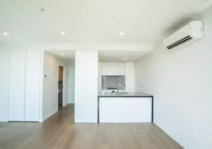 Featuring two delightful bedrooms, each with built-in robes, the master bedroom boasts an exclusive ensuite, while the second bedroom is positioned on the corner, bathing in natural light and captivating vistas. The beautiful open-plan living and dining area, adorned with timber flooring, seamlessly connects to a modern kitchen equipped with stainless steel gas appliances and a dishwasher. A central bathroom, European laundry, intercom, reverse cycle heating and cooling unit, and a designated car space round out this captivating residence.