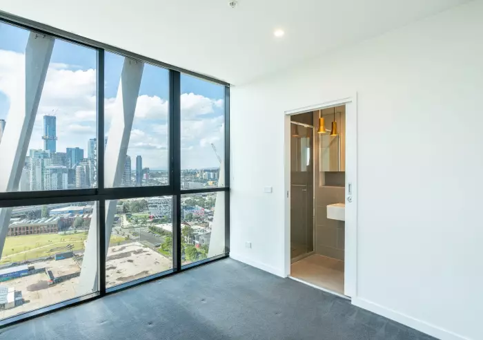 Indulge in the building's remarkable amenities, including a communal BBQ area, spa with city views, private dining room and kitchen, a designer lounge with a fireplace, and even an outdoor cinema.