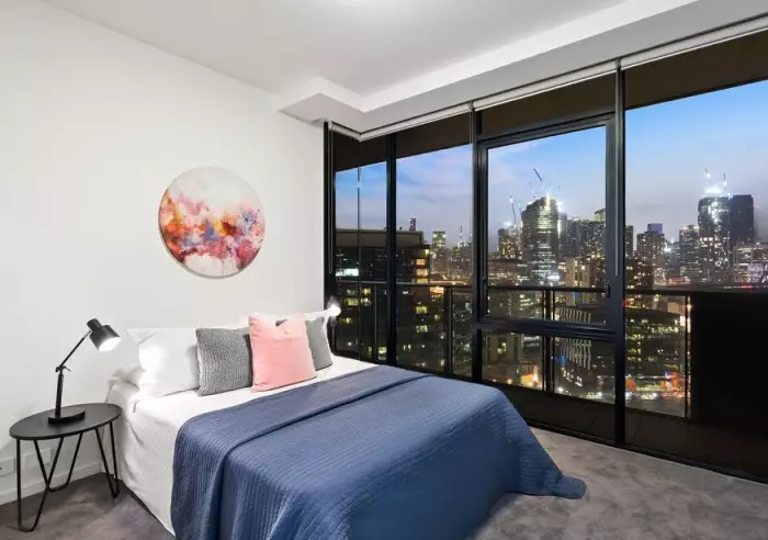 UNFURNISHED 3-bedroom apartment featuring floor-to-ceiling windows, offering stunning city and water views. Open-plan living and dining area with access to an expansive balcony. Modern kitchen equipped with quality stainless steel appliances. Master bedroom with ensuite, plus two additional spacious bedrooms with built-in wardrobes. Two stylish bathrooms with contemporary finishes. Two secure car spaces included.
