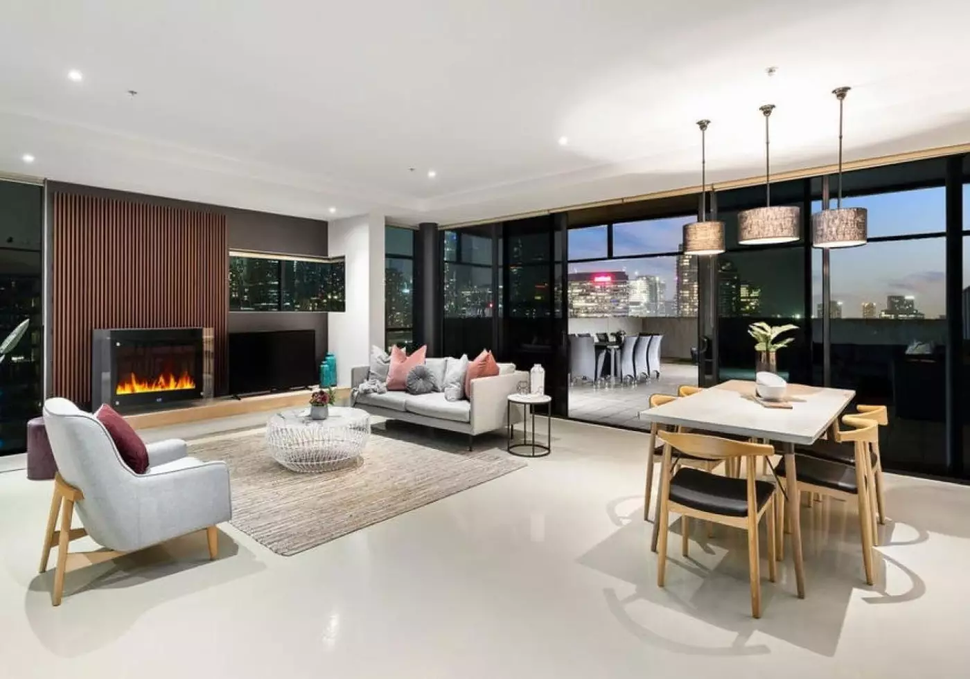 Open-Plan Living & Dining with floor-to-ceiling windows