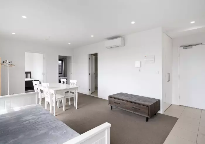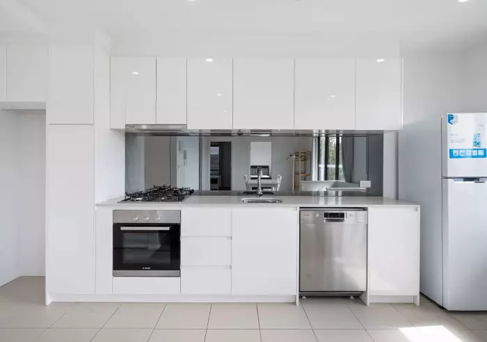 Step inside to discover a bright and airy open-plan living and dining area, seamlessly connected to a contemporary kitchen fitted with stainless steel appliances, a gas cooktop, and a sleek glass splashback. The private balcony is the perfect place to unwind and enjoy leafy treetop views.