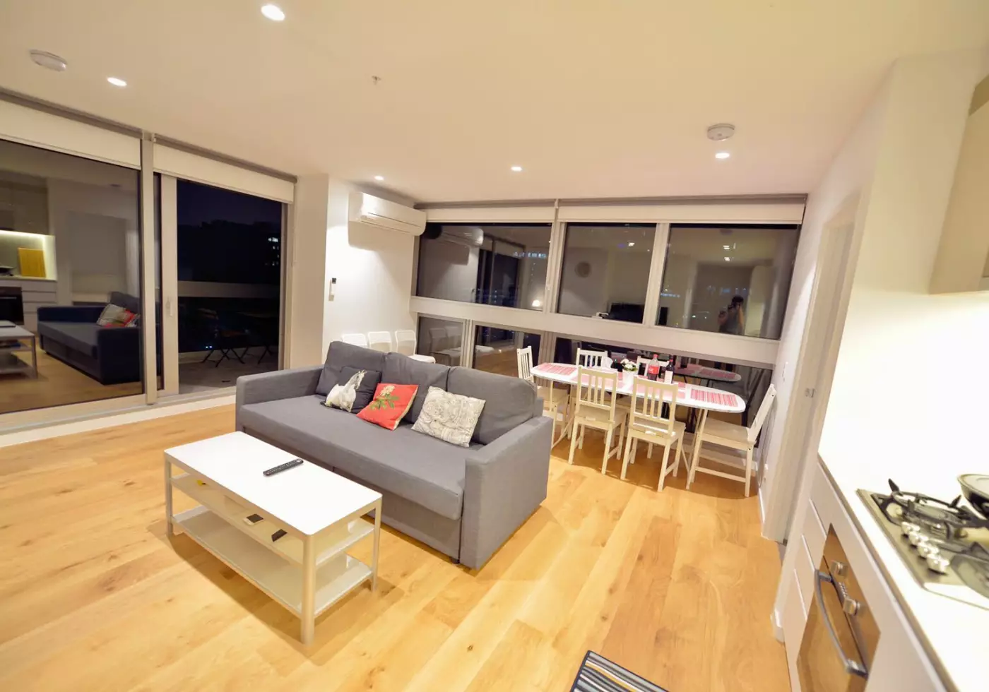 • Spacious open-plan living and dining area with timber floorboards and reverse-cycle air conditioning
