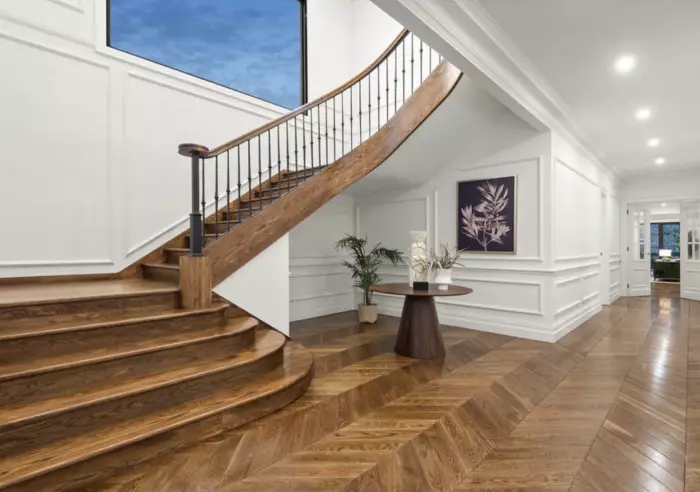Set on an elevated block, the home welcomes you with soaring ceilings, rich European Oak flooring, and a sweeping elegent staircase that flows into a vast open-plan living and dining area. At its heart, a stunning Calacatta Marble island beneath a crystal chandelier anchors the gourmet kitchen – complete with a full suite of premium Miele appliances, an integrated fridge, induction cooktop, and a luxurious Butler’s kitchen. Double doors lead seamlessly to a north-facing entertainer’s terrace and an easy-care backyard, enhanced by a private putting green.