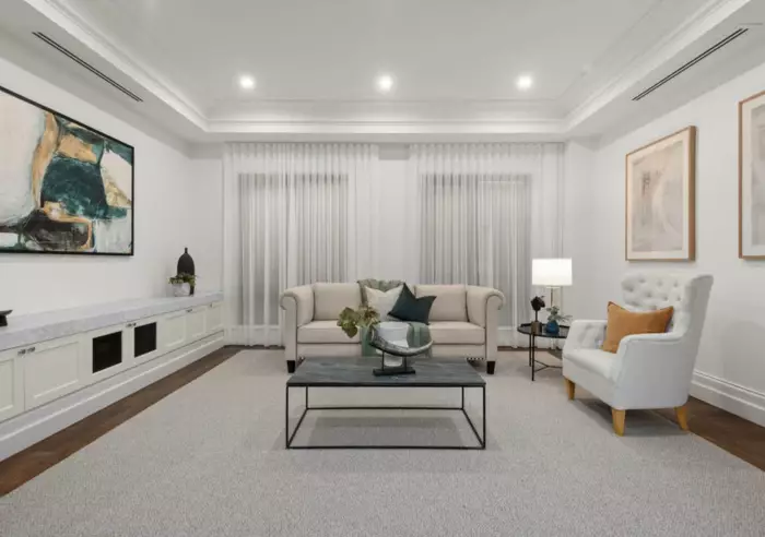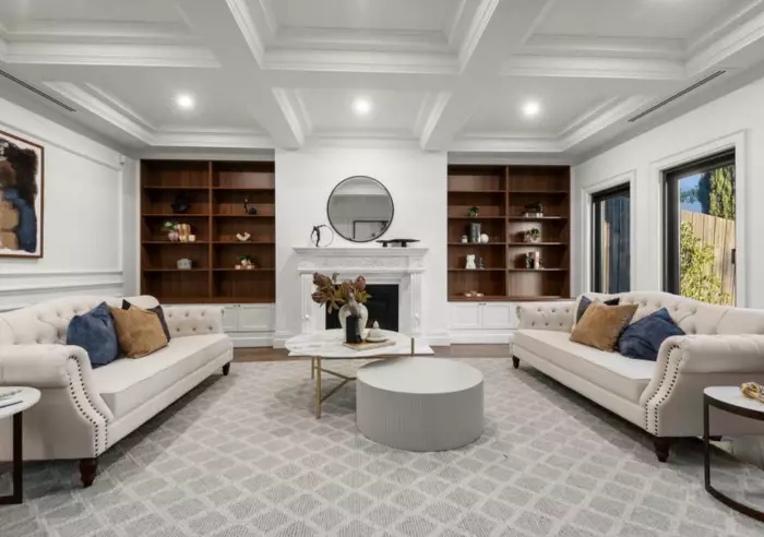 Designed for flexible family living, the home also offers a formal lounge with fireplace, a separate entertainment room, and an upstairs retreat. Every bedroom boasts its own fully tiled, italian marble-finished ensuite and either built-in or walk-in robes. Further features include a marble powder room, smart toilets, a Vintec wine fridge, secure video entry, an internally accessed double garage, gated multiple parking spaces at front yard, and zoned Daikin reverse cycle heating and cooling throughout