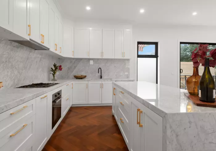 • Italian marble benchtops and splashbacks throughout kitchen, bathrooms and laundry