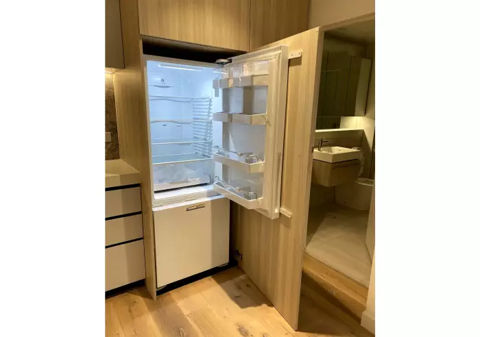 -Open plan living and dining area -Architectural design kitchen with marble counter