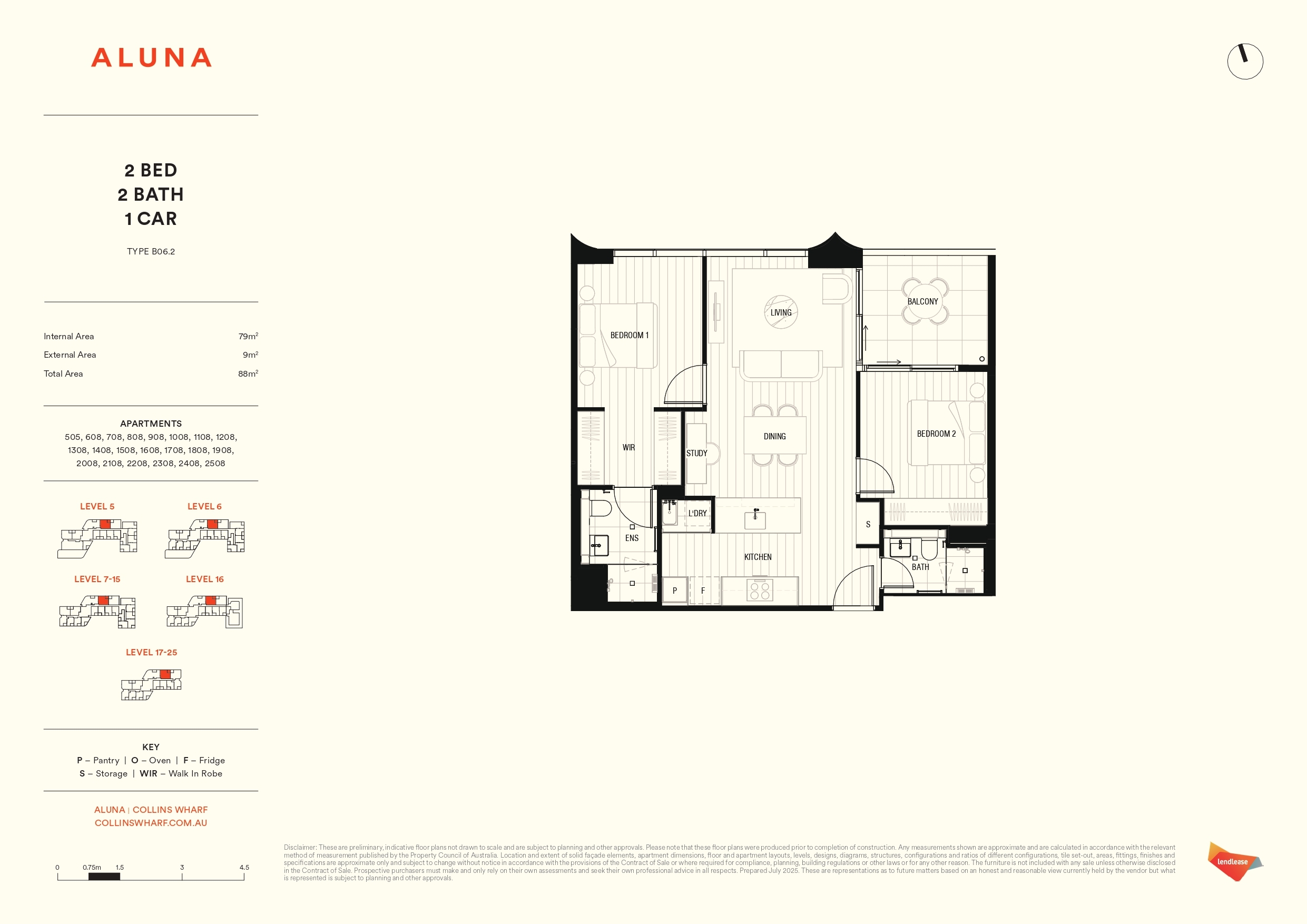 This beautifully appointed 2 Bedroom, 2 Bathroom apartment with 1 secure car space sits within ALUNA, the newest addition to the prestigious Collins Wharf waterfront series. Offering 79sqm of internal living and 9sqm of outdoor space (total 88sqm), this residence delivers the ideal combination of comfort, smart design and modern waterfront living.