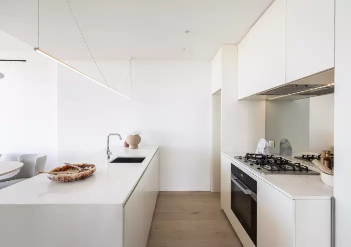 • Contemporary kitchen with stone benchtops, premium appliances and generous storage