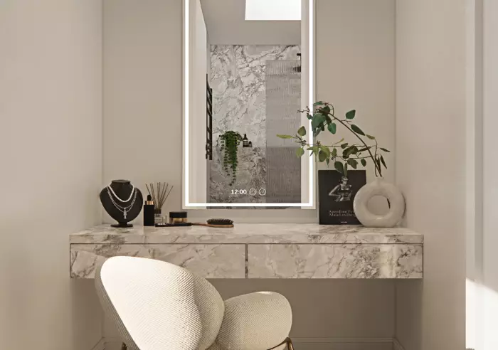 Accommodation is both stylish and highly functional. The master suite includes a beautifully appointed walk-in wardrobe with glass and timber finishes, along with an elegant ensuite featuring an LED vanity mirror. Additional bedrooms each enjoy private or nearby bathroom access, ensuring comfort for family and guests alike. Every space—whether for cooking, working or unwinding—has been thoughtfully crafted to elevate daily living with practicality and indulgence.