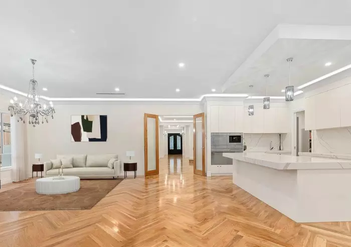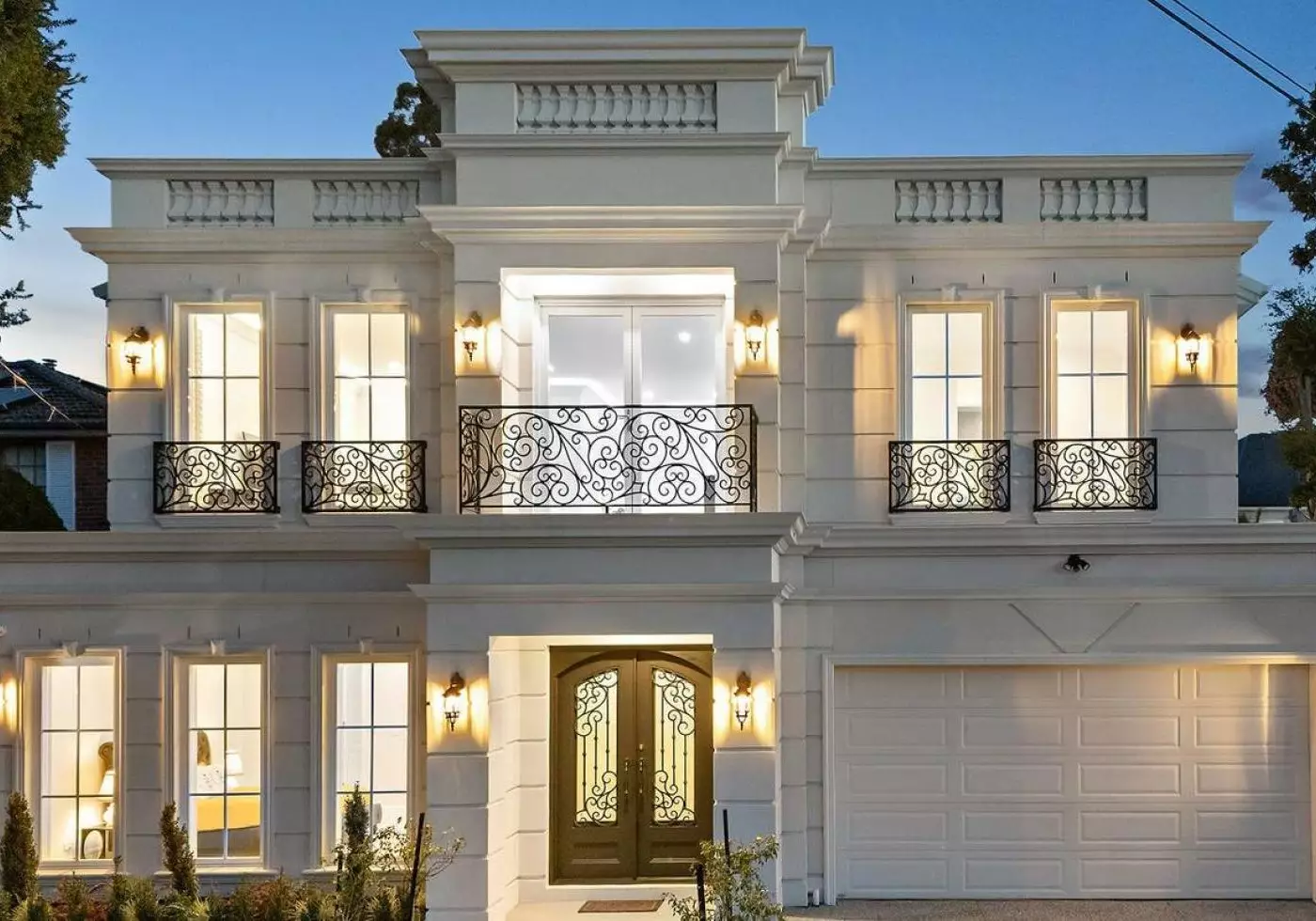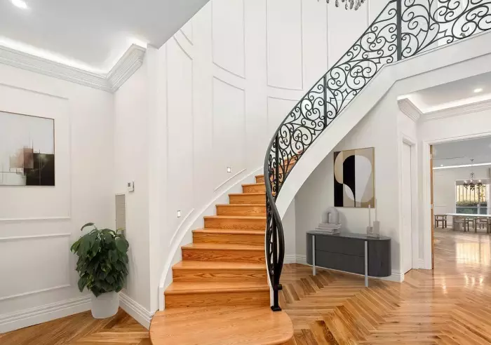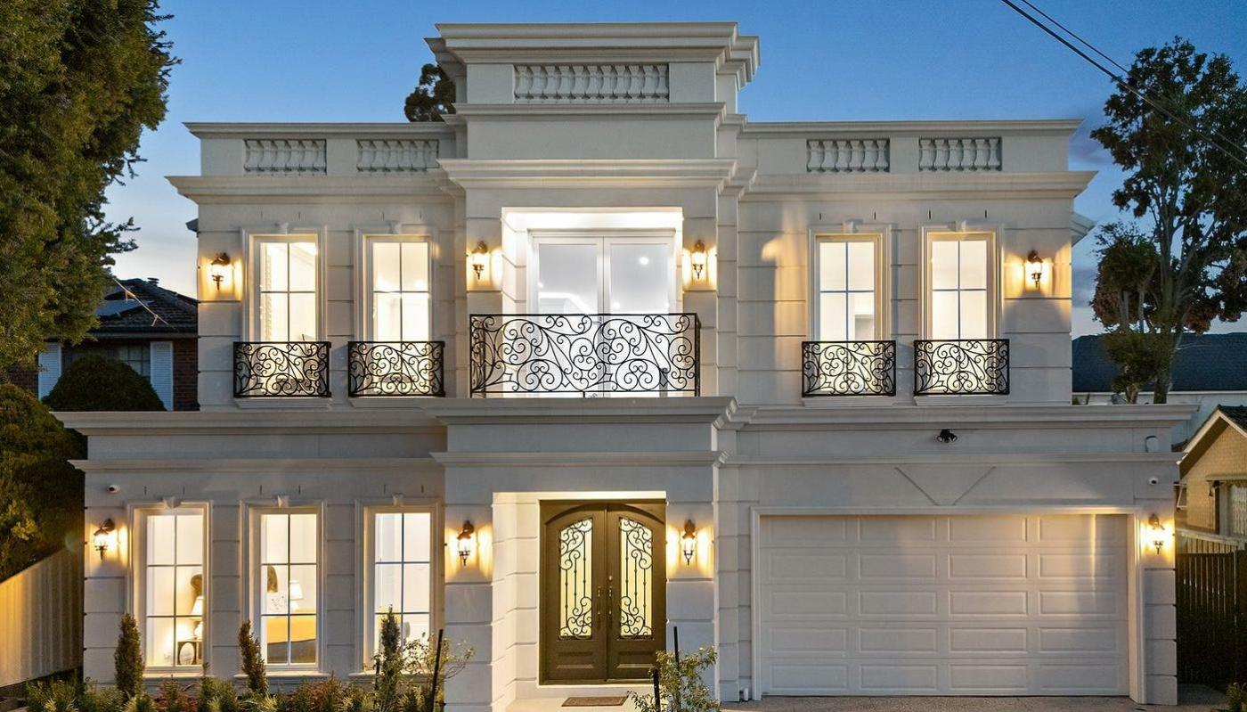 This French-inspired luxury residence sits proudly on a 654 m² allotment within one of Glen Waverley’s most desirable low-density neighbourhoods. Distinguished by its elegant façade, refined wrought-iron detailing and grand double-height entry void, the home offers a striking blend of classical charm and modern sophistication. A sweeping spiral staircase sets the tone for the interiors, where light-filled living spaces, premium finishes and meticulous craftsmanship come together to create a timeless family retreat.