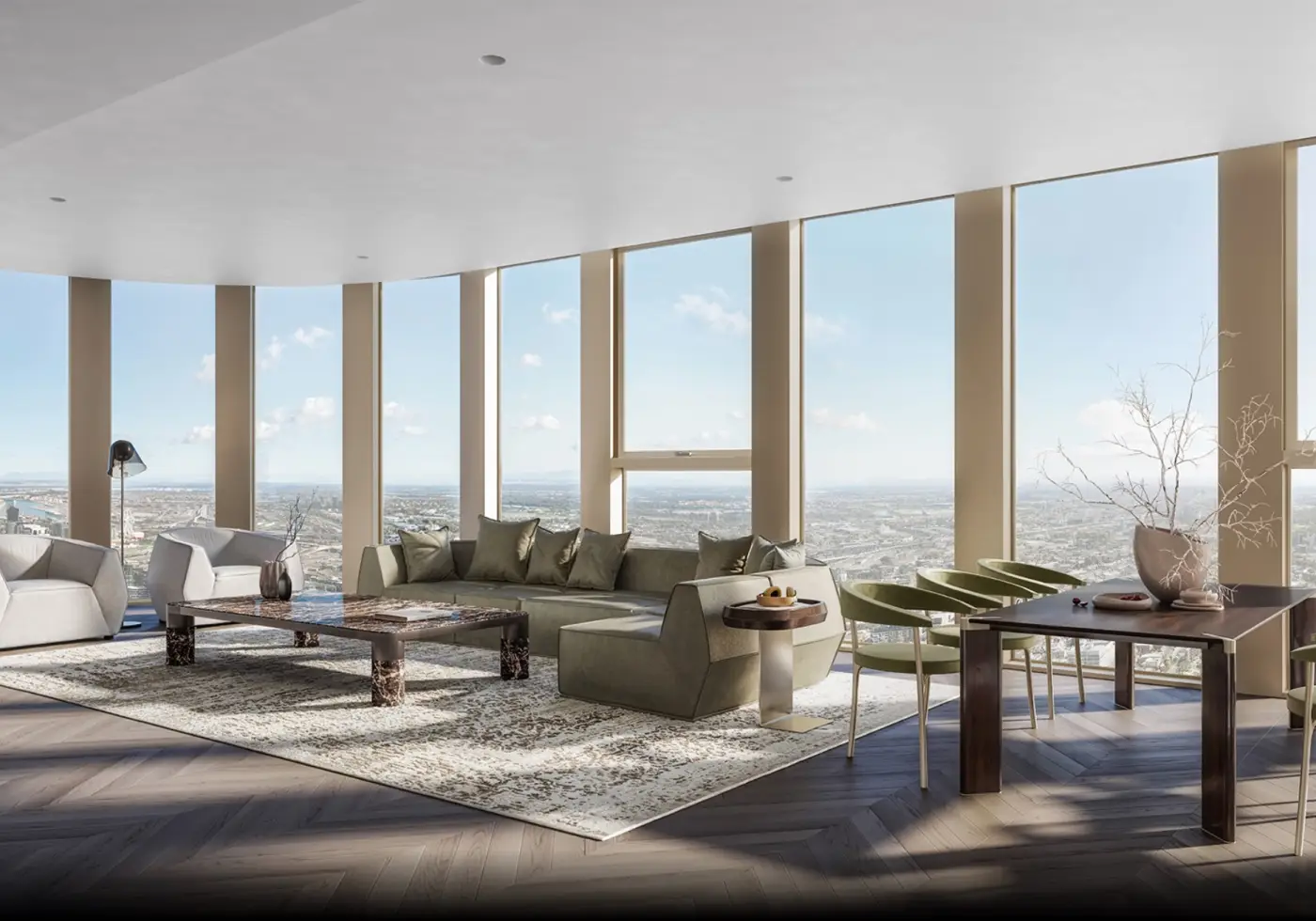Commanding a privileged position on the upper Sky Crown levels, this exceptional 3 Bedroom + 2 Bathroom residence delivers a remarkable sense of elevation, scale and refinement. Spread across an impressive 145.2sqm (internal), the home presents a sweeping corner layout distinguished by its curved panoramic frontage and abundant natural light.