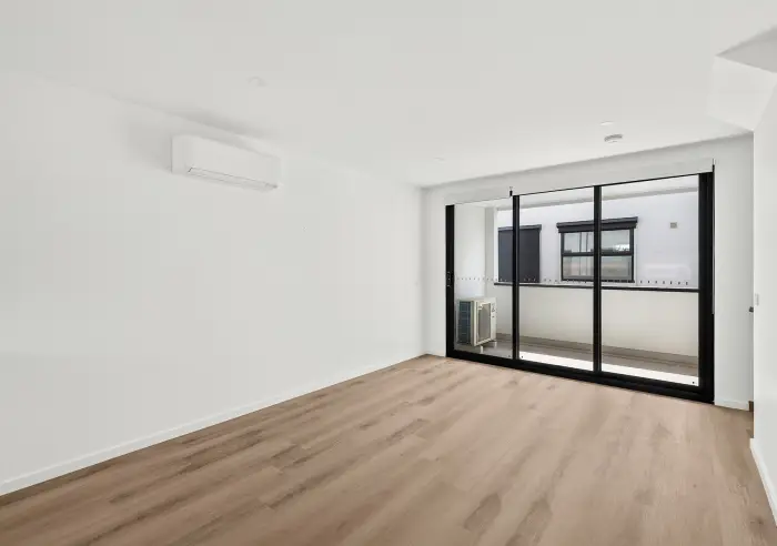 The residence features a light-filled open-plan living and dining area, complemented by a contemporary kitchen with quality appliances, stone benchtops, and ample storage. Both bedrooms are generously sized and include built-in robes, while the modern bathroom is finished with sleek, high-quality fittings. Heating and cooling ensure year-round comfort.